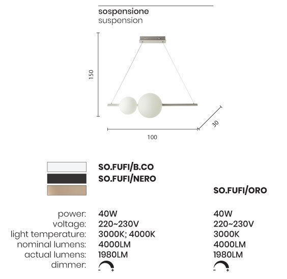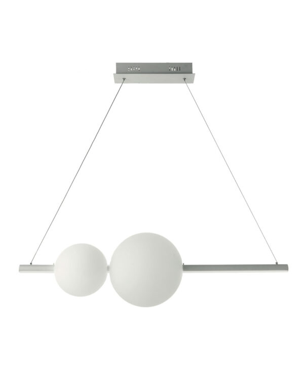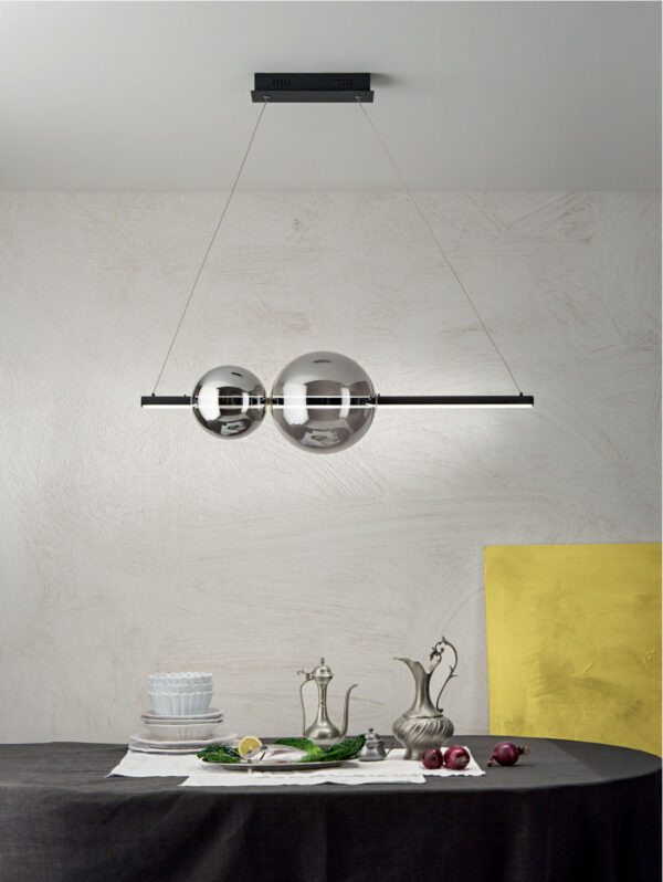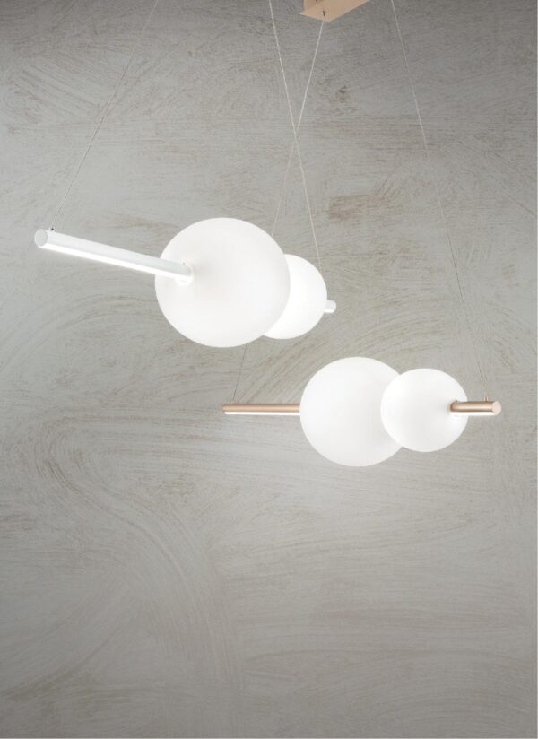 Sospensione a LED in metallo verniciato e vetro soffiato. Cavetti regolabili in lunghezza. Disponibile in diversi colori.