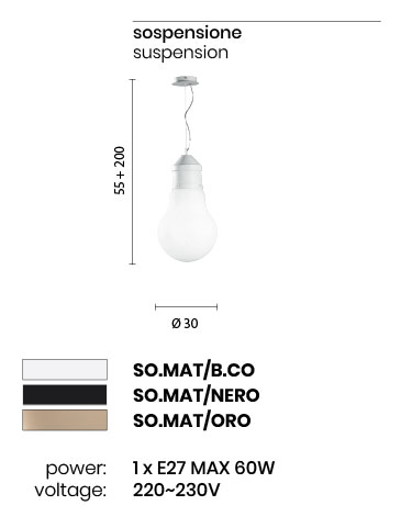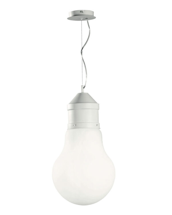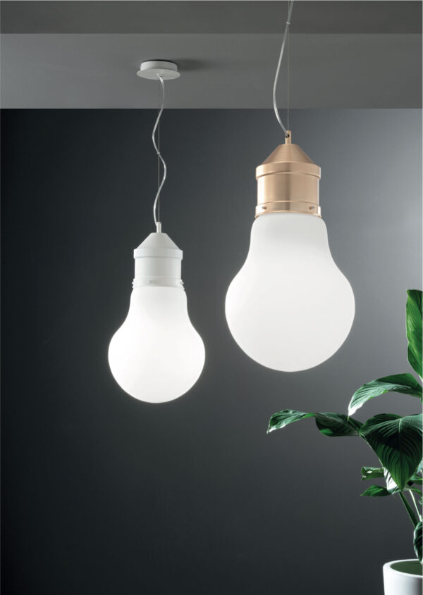 Sospensione in vetro soffiato e metallo verniciato a polvere. Disponibile in diversi colori.