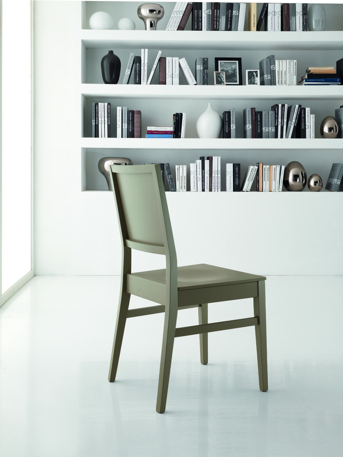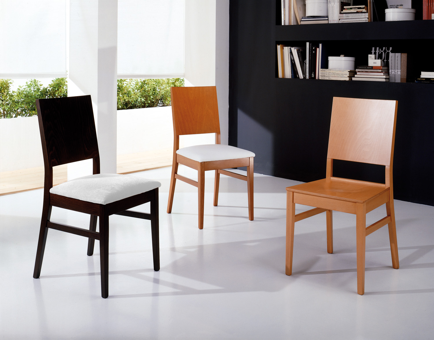 Sedia con struttura in frassino sagomato e curvato, schienale in multistrato di frassino.